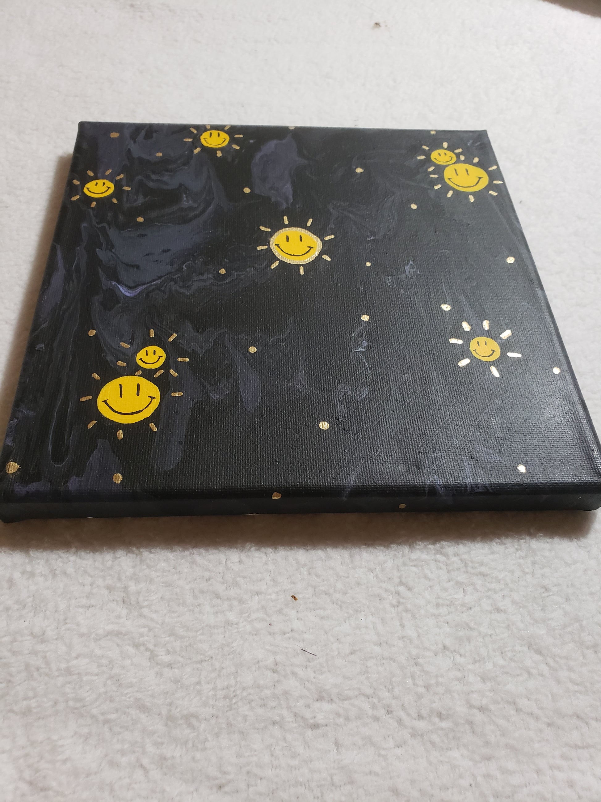 Acrylic paint and gold enamel on 8 x 8 x 0.5 inch canvas
